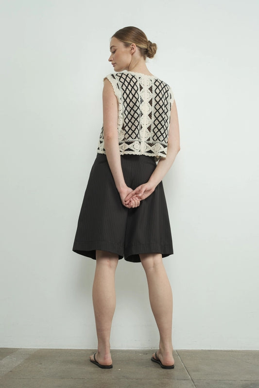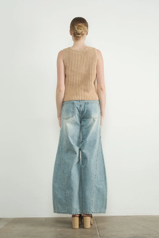 Floral Embroidery Crochet Trimmed Ribbed Cami - Salmon Pink