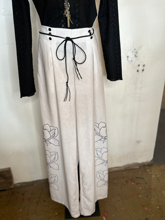 Cream Floral Wide Leg Pants