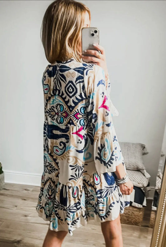 Tribal Buttoned Mini Dress