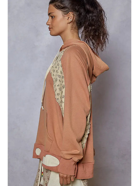 Gauze Flower Patch Thermal Hoodie Knit Top