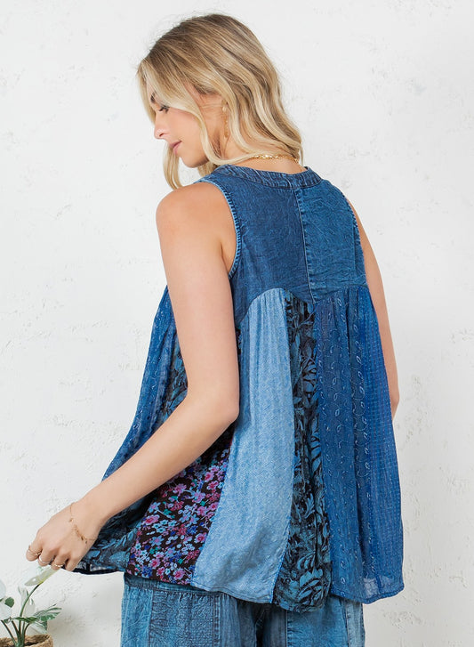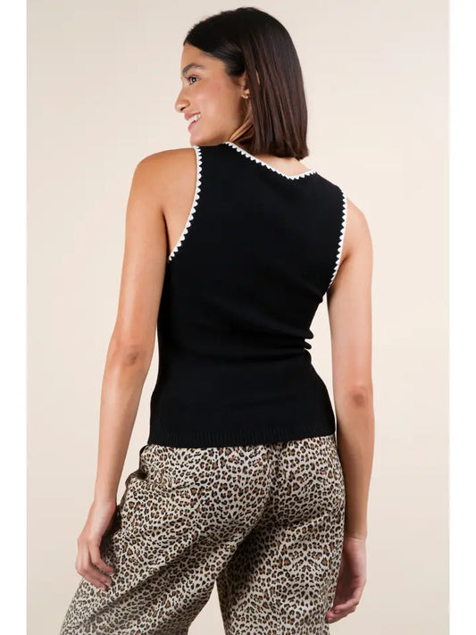 Floral Embroidery Crochet Trimmed Ribbed Cami - Salmon Pink