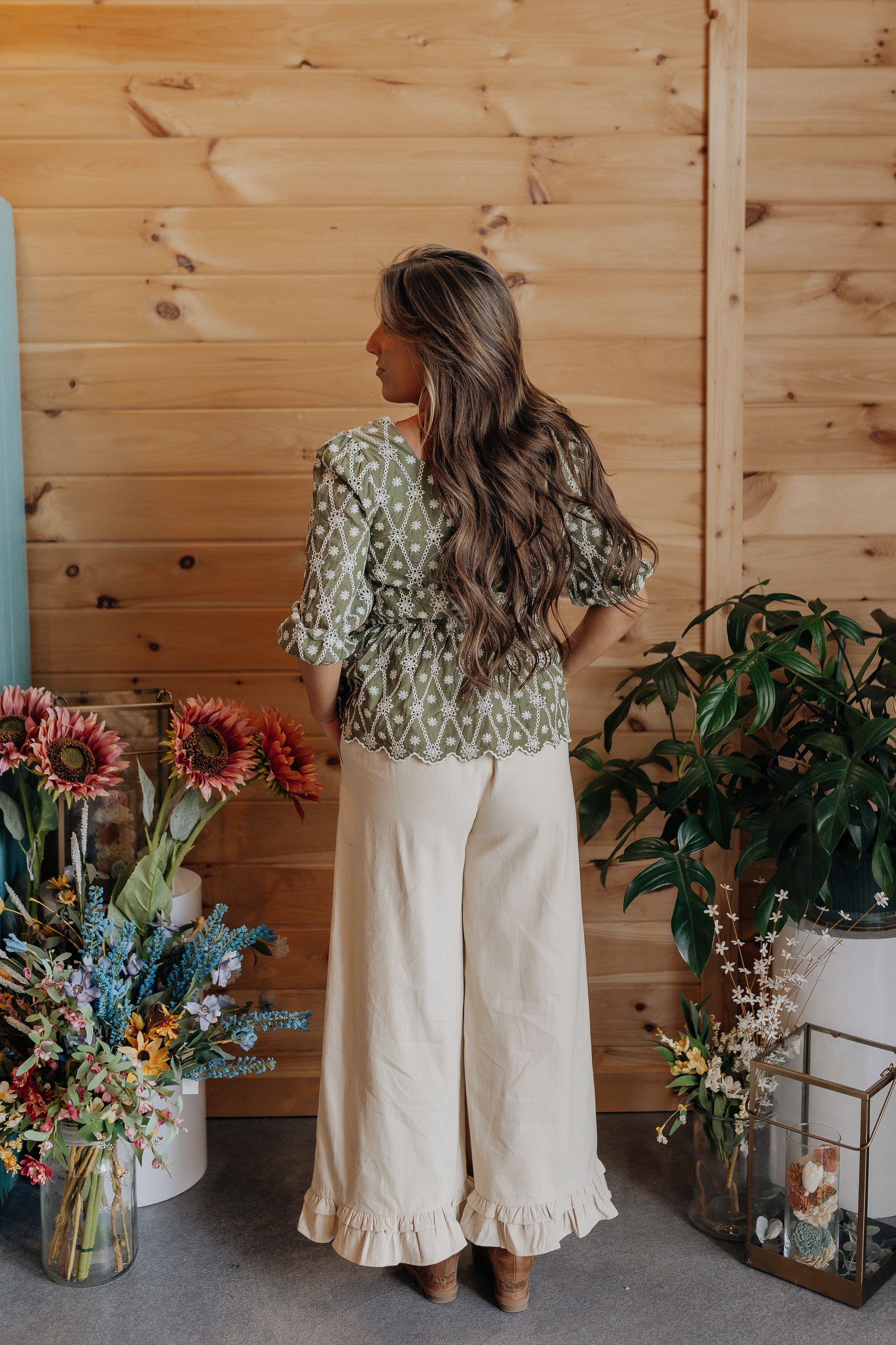 Ecru Ruffle Bottom Pant
