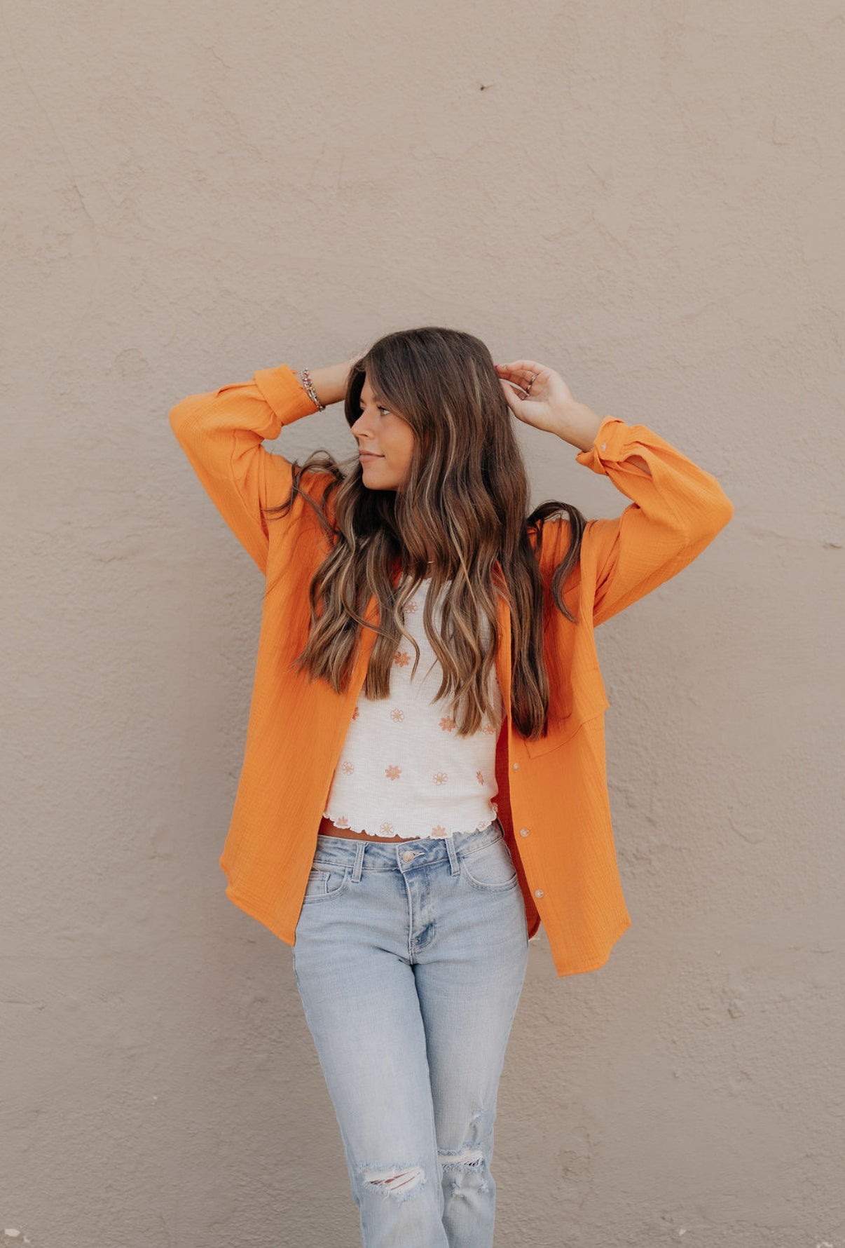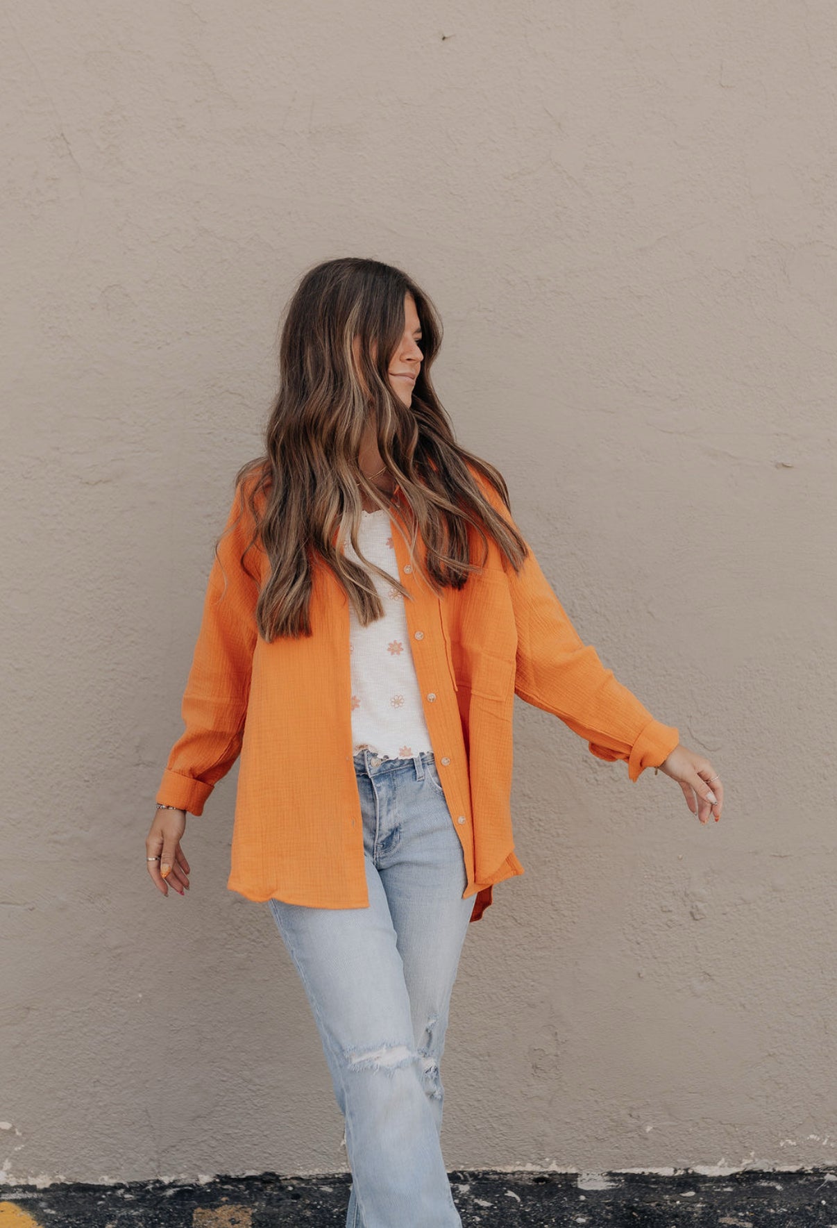 Karsyn's Gauze Button Up - Orange