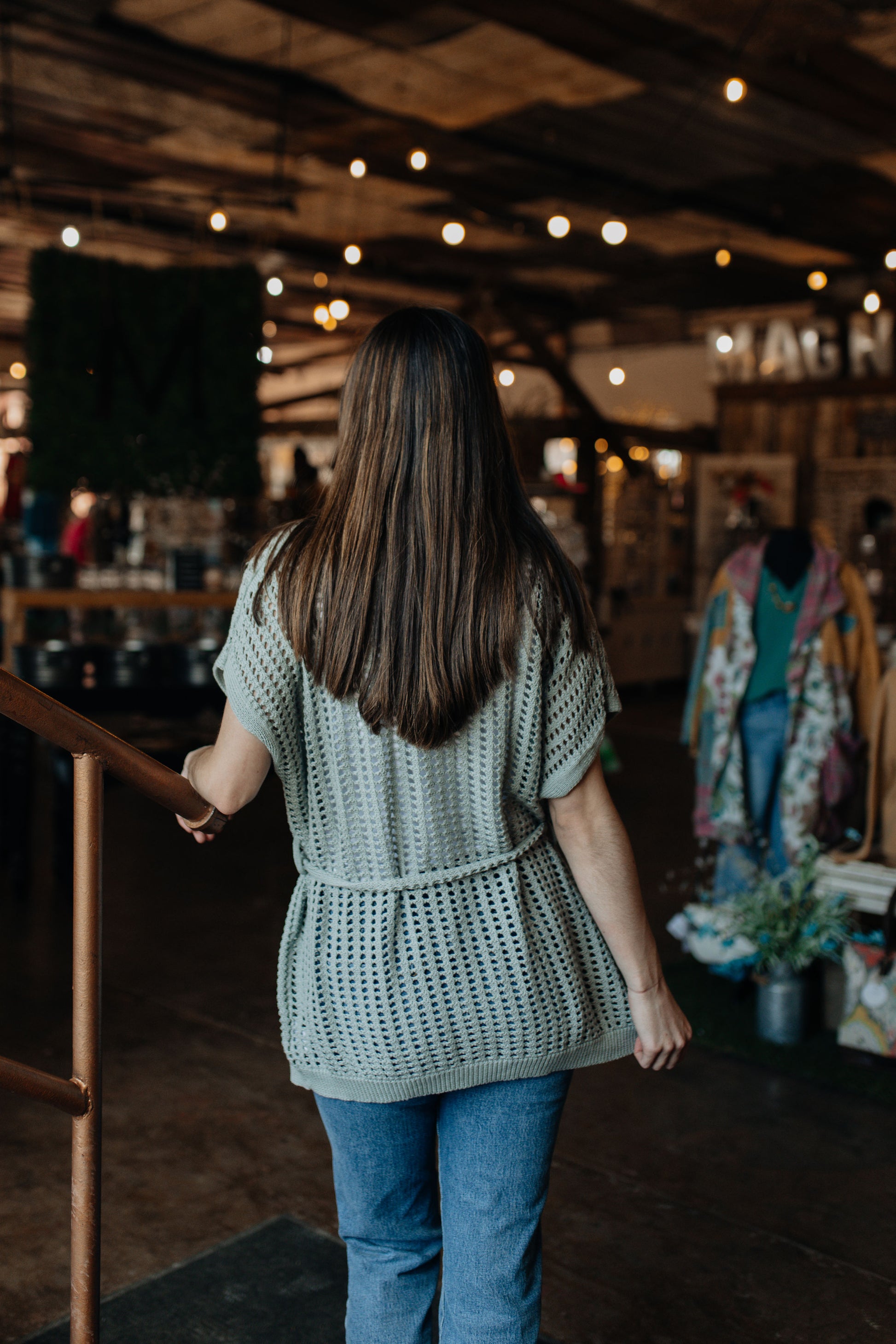 Open Knit Seafoam Top