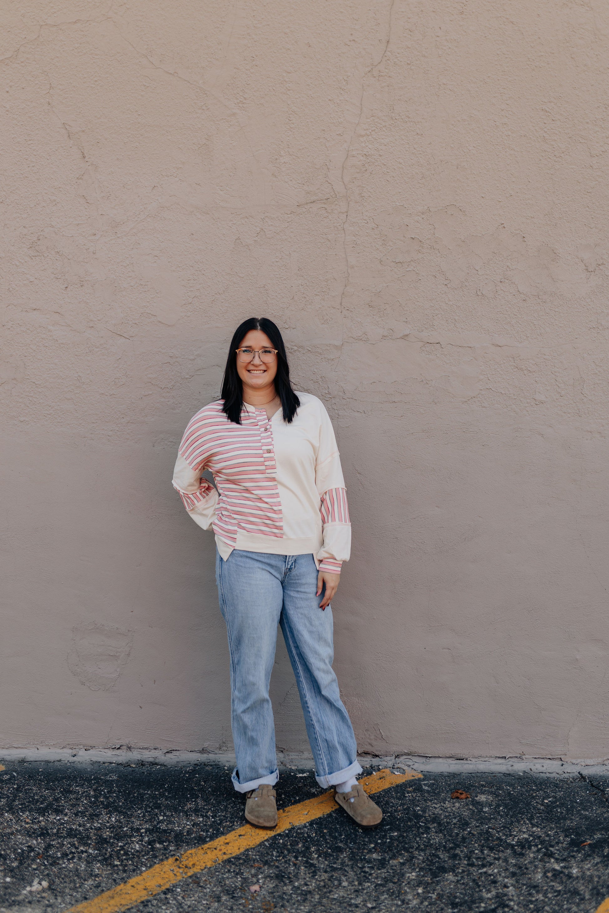 Stitched Detail Color Block Patchwork Oversized Pullover Top