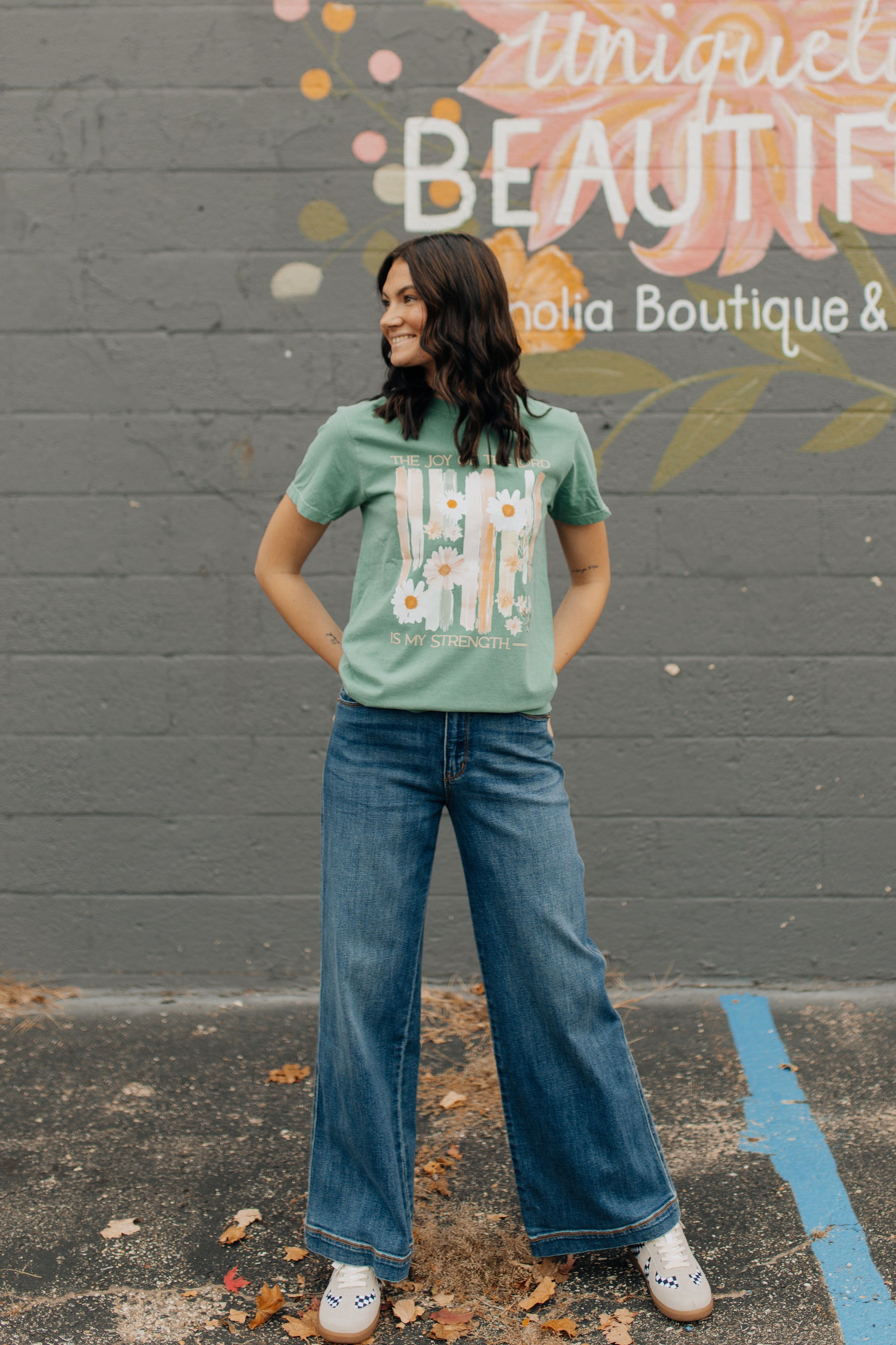 Inspire faith and positivity with our Comfort Colors "The Joy of the Lord is My Strength" graphic tee. This premium unisex t-shirt features a beautiful hand-painted brush stroke design in soft peach, sage, and cream hues, overlaid with cheerful wildflowers and uplifting scripture from Nehemiah 8:10. Crafted with the classic comfort and durability of Comfort Colors, this tee offers a relaxed fit and vintage vibe that your customers will love.
